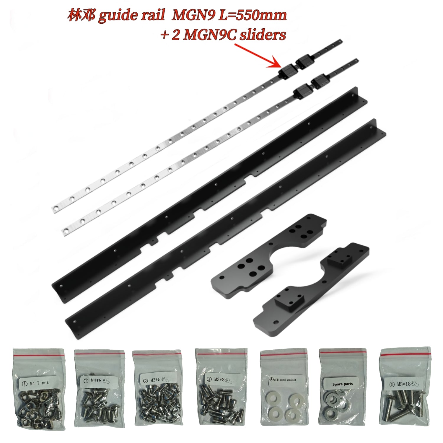 X-axis upgrade guide rail kit (林邓 guide rail): includes one sets of 林邓 linear guide rails, X-axis installation brackets (2 types), and screw packs.