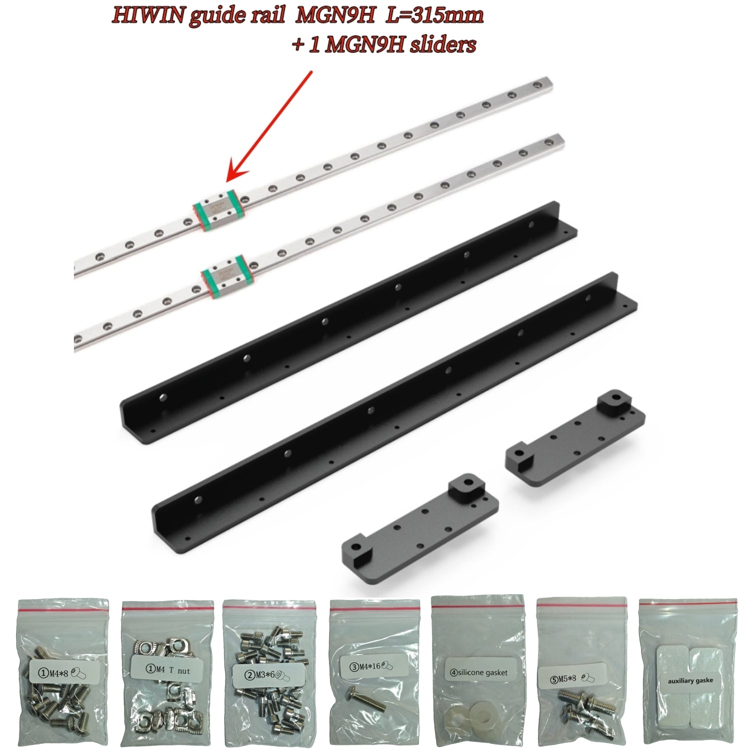 X Linear Rail kit: Includes linear rail, X-axis mounting bracket, screw package.