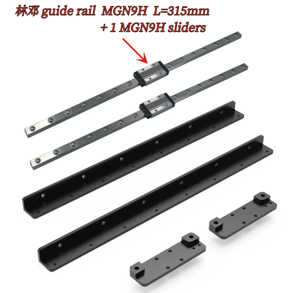 In the new version of the Y-axis upgrade kit, the rail mounting brackets consist of two complete brackets, making it easier to install and more durable. It uses different linear rails compared to the old version: the old version uses MGN12H L320mm rails, while the new version uses MGN9H L315mm rails.